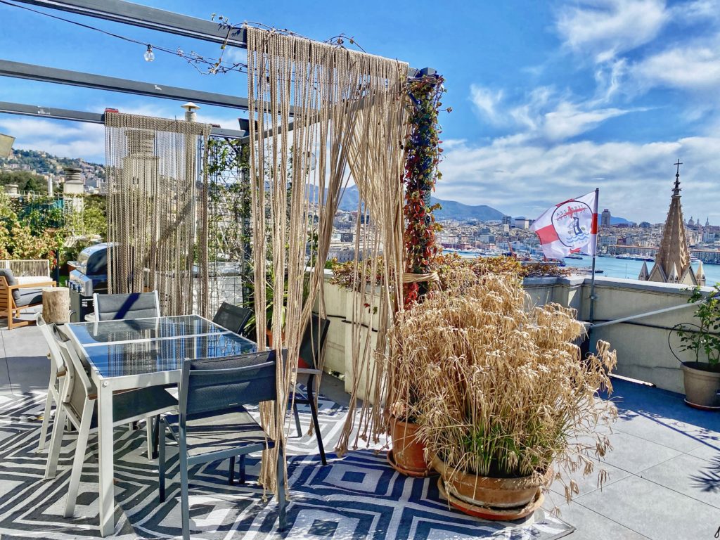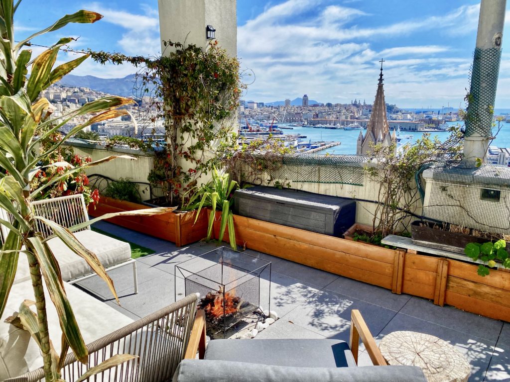 Terrazza privata con vista aperta sul porto e sul golfo di Genova.